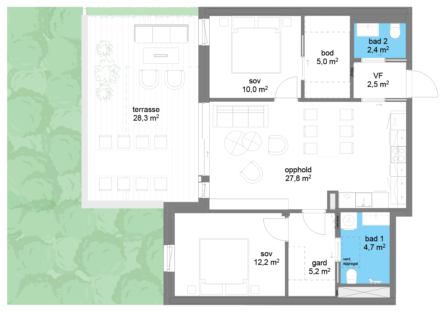 Mulighet for kjøp av p-plass og bod i kjeller.