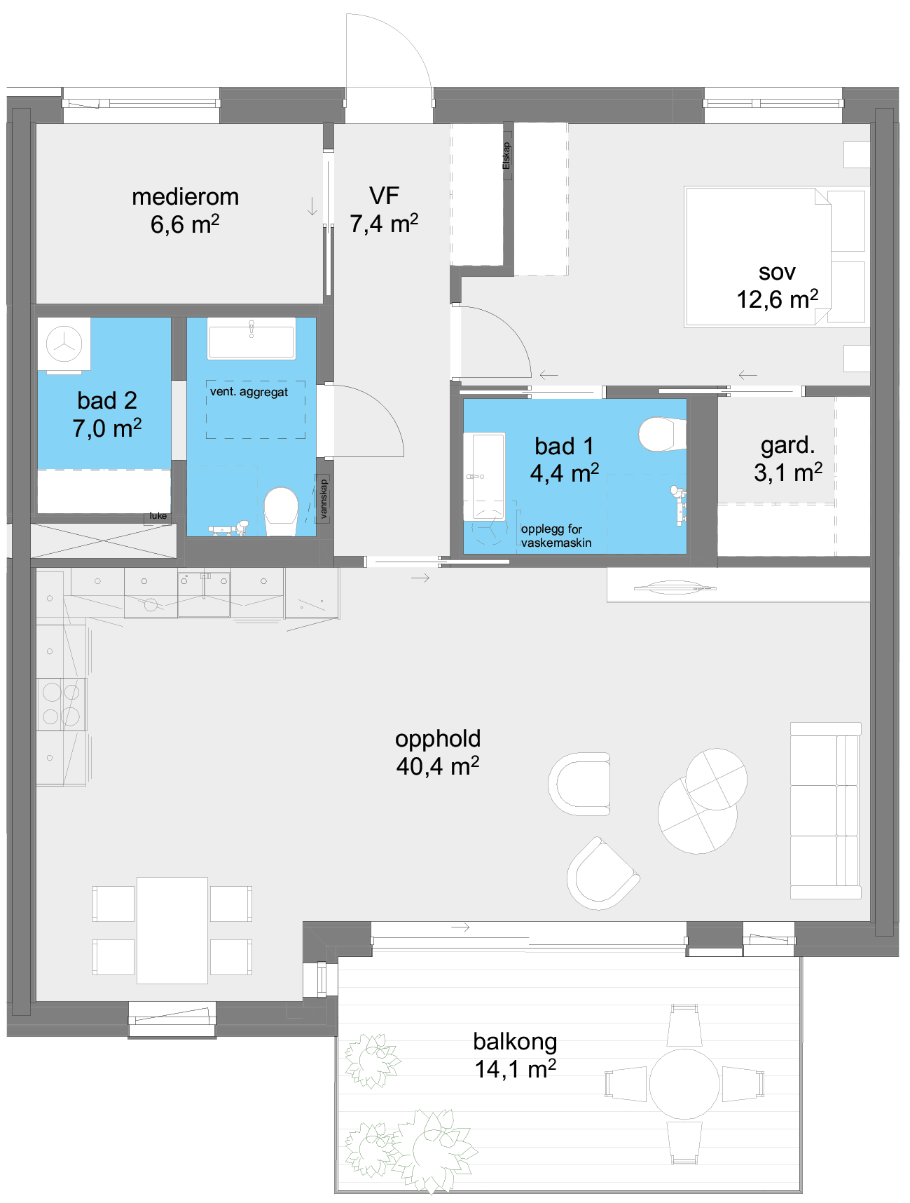 Mulig soverom er tilgjengelig som tilvalg.