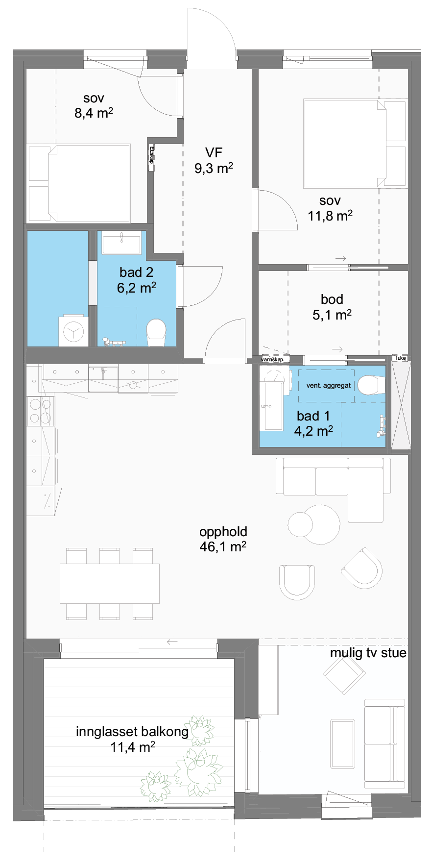 Mulighet for kjøp av p-plass og bod i kjeller.