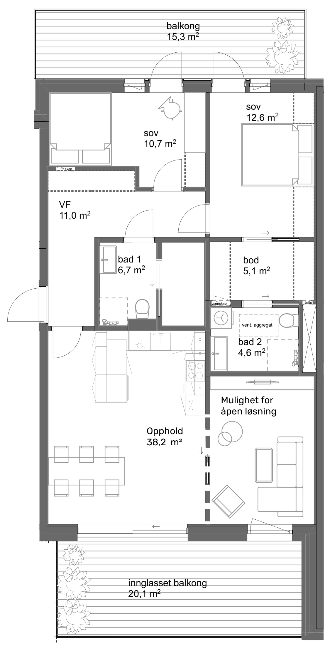 Mulig soverom er tilgjengelig som tilvalg.